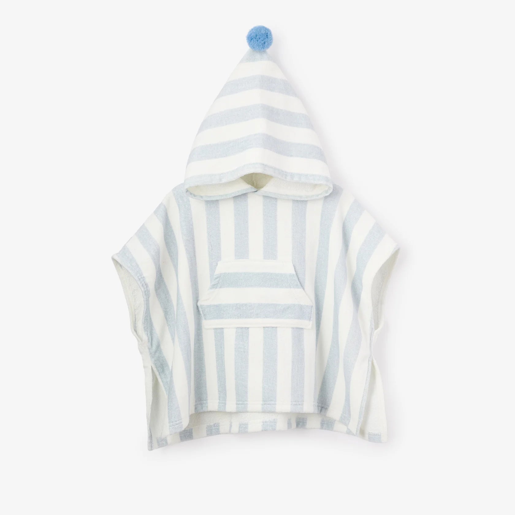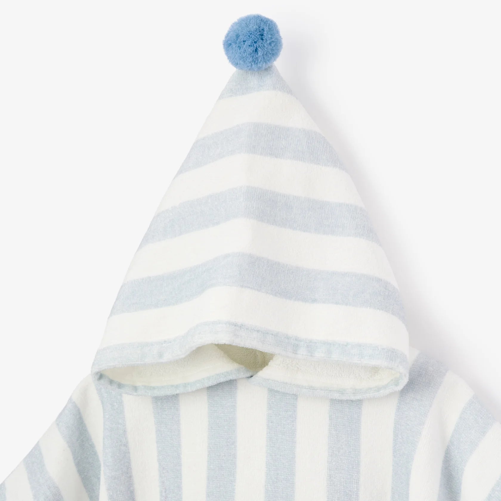 Crafted from soft, absorbent cotton terry, this cabana-striped poncho is a beach and poolside essential. Designed with an oversized fit, wide tacked sleeves, and a playful contrast pom-adorned hood, it grows with your child for years of sun-soaked adventures.