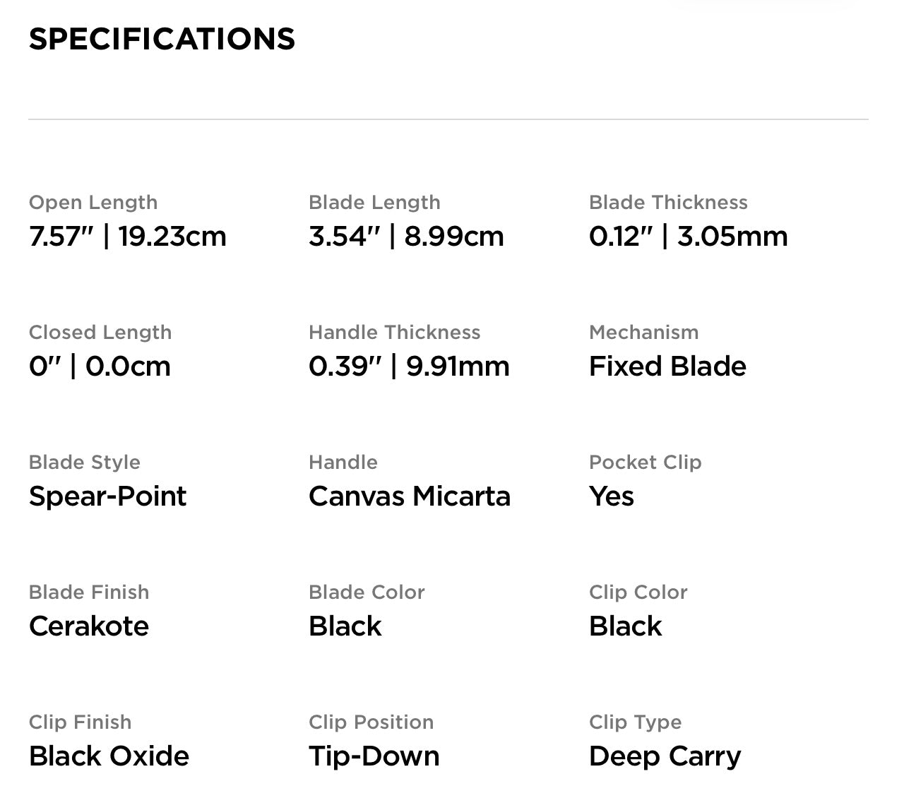 From outdoor applications to daily tasks, the new black variant is all business with a super tough CPM-MagnaCut spear-point blade with a black Cerakote finish, a black canvas micarta handle, and black oxide hardware.