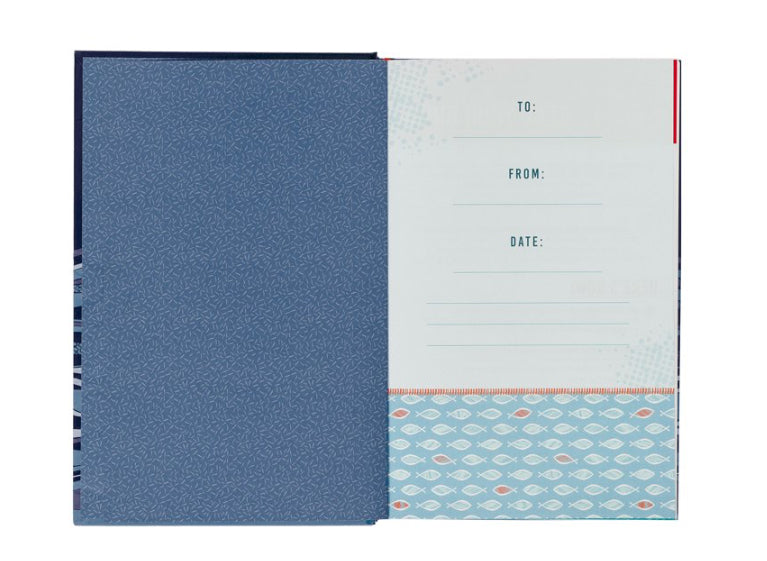 The hardcover children's Bible comes alive with a stunning deep blue ocean design. Discover the playful yet cleverly hidden blue and orange fish that dance across the artwork. Above this enchanting scene, the title boldly stands out in vibrant orange letters.