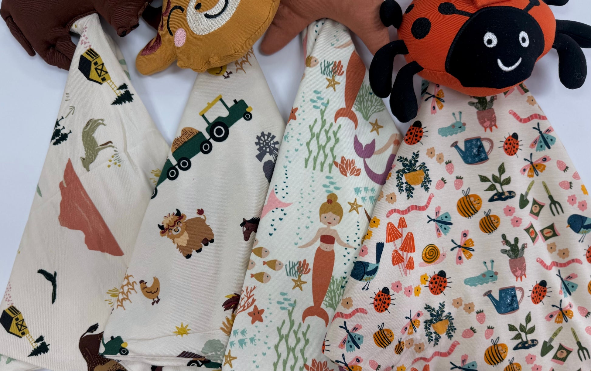 The cutest bamboo baby ladybug lovey available in a cute Garden Friends bugs pattern!