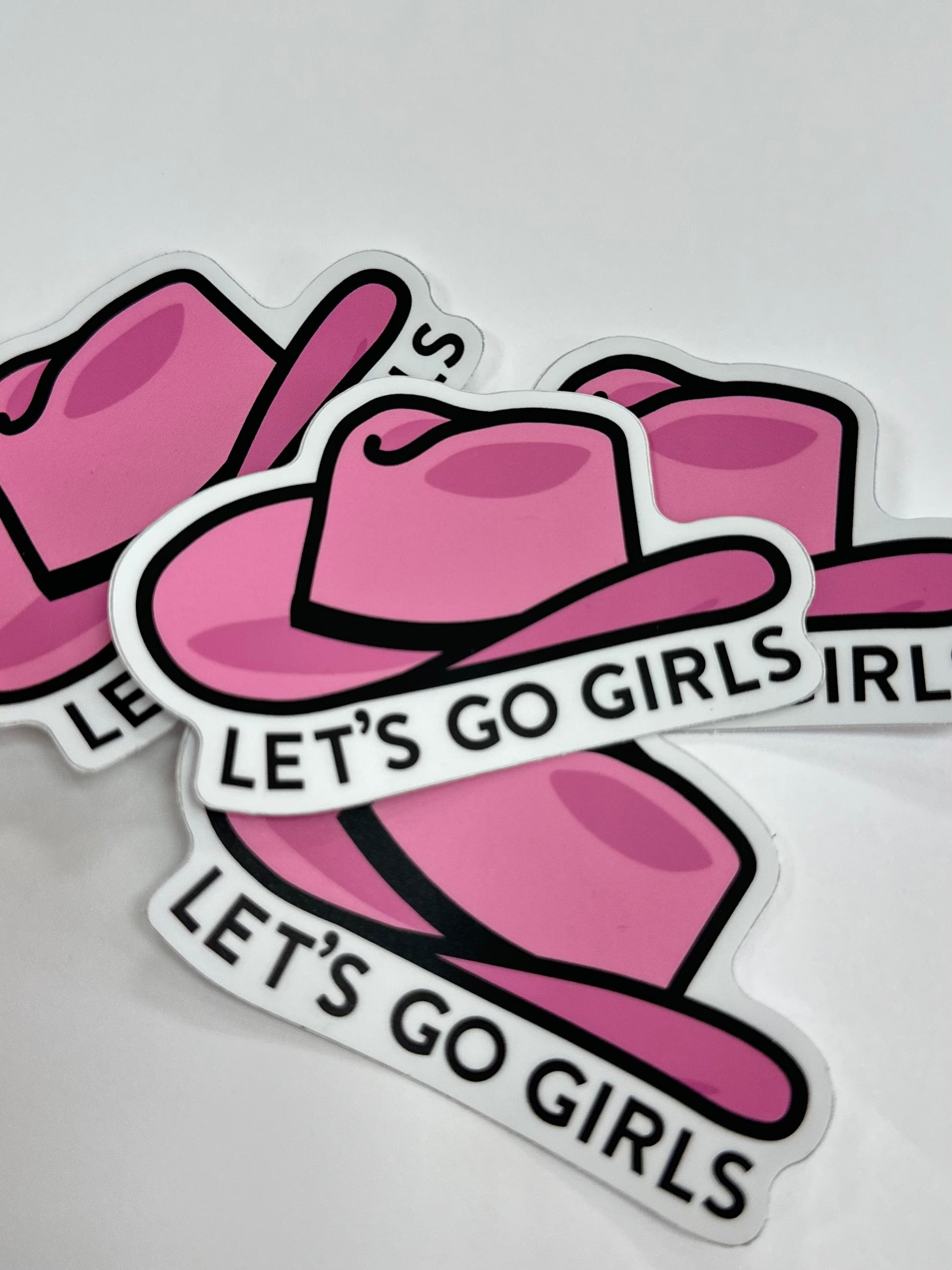 Add some country flair with our Let's Go Girls pink hat sticker! This cute western sticker will add that extra pop to any accessory.