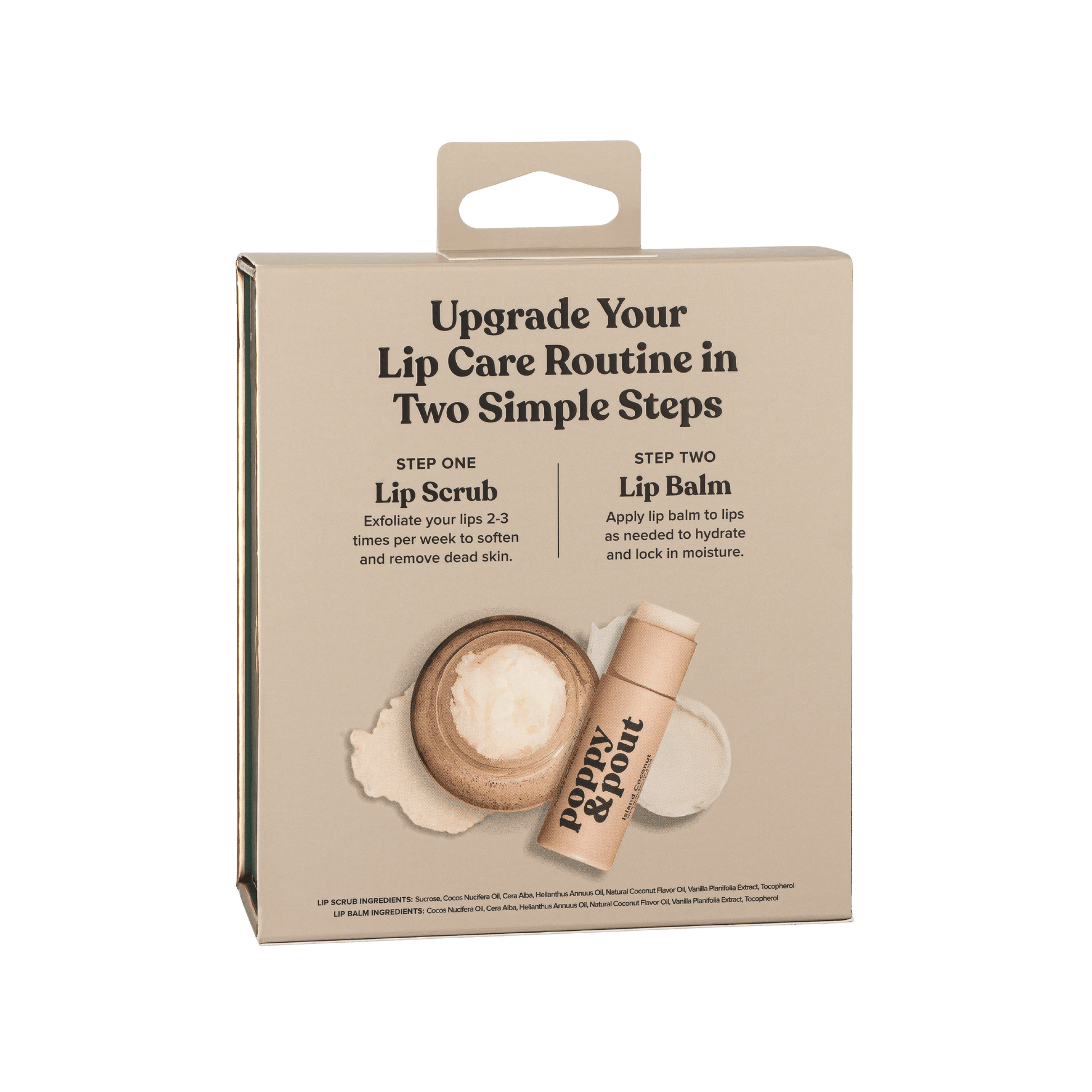 Step up your lip care routine with our Lip Care Duo!This gift set includes one matching lip balm and lip scrub in a cute green and gold, recyclable gift box.