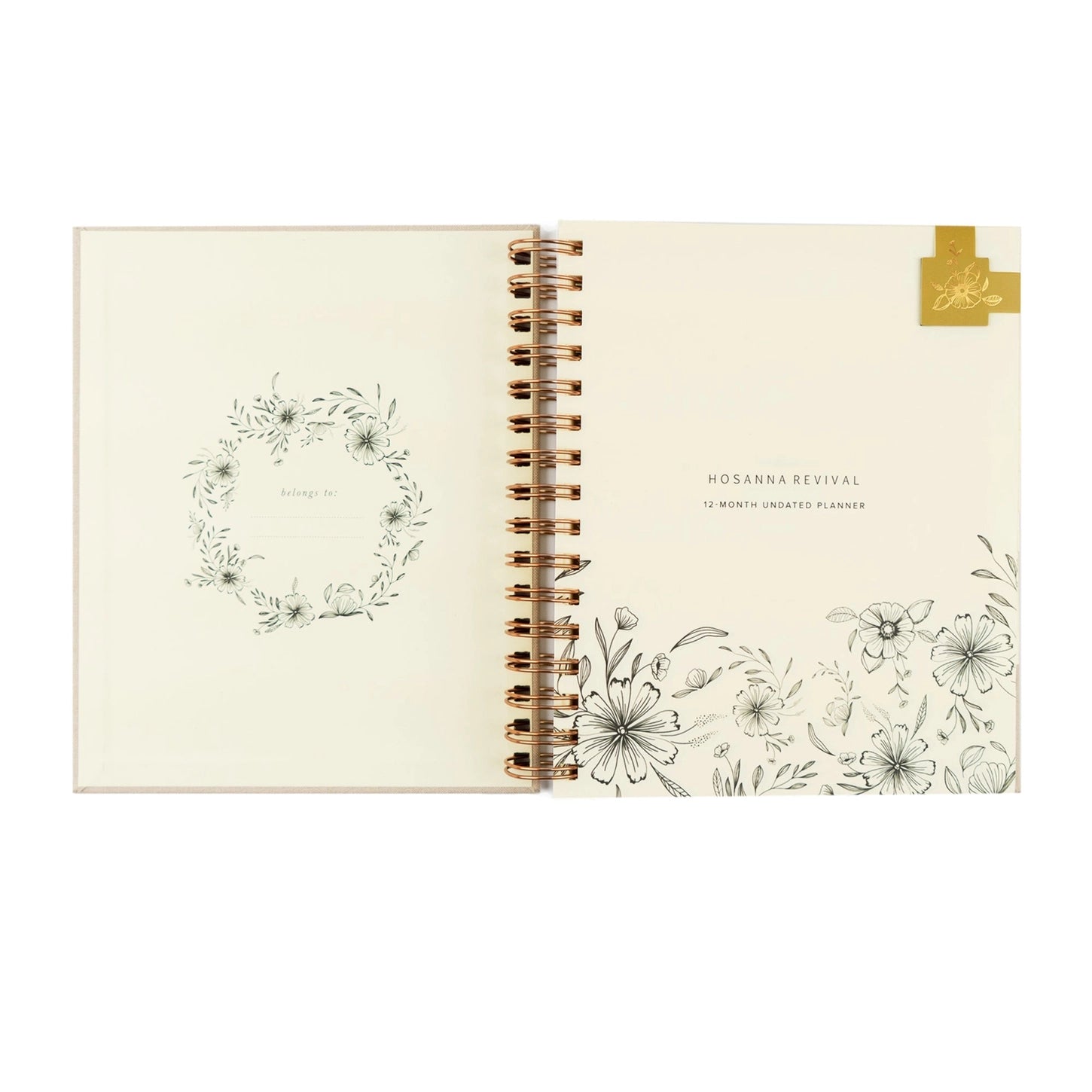 This 12-Month Undated Spiral-Bound Planner features Hosanna Revival’s beautiful Magnolia Springs design.