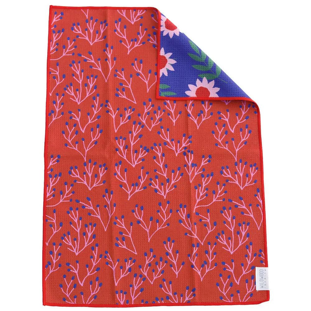 This Microfiber Hand Towel is made with a fabric blend of 80% recycled PET and 20% polyamide.