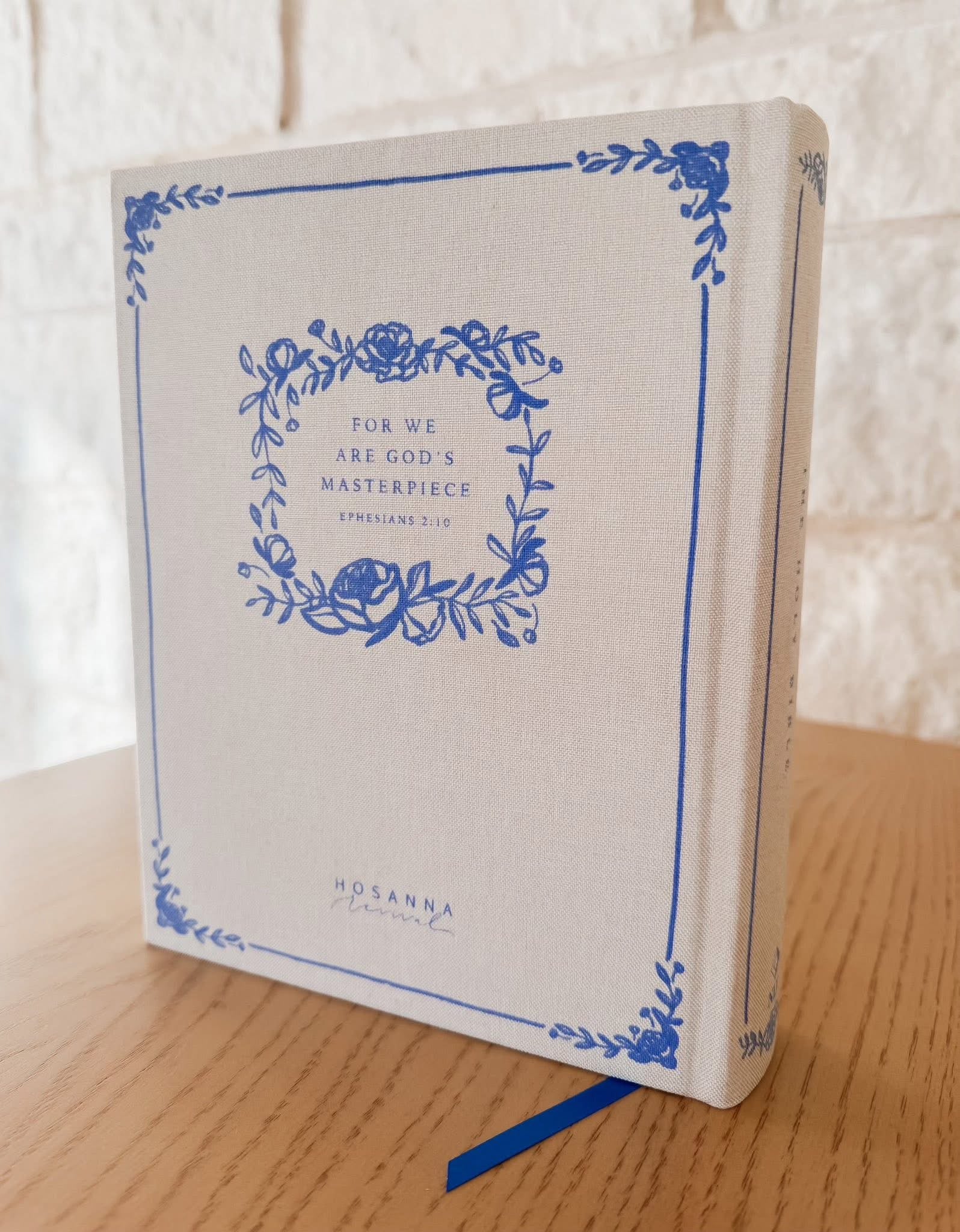 It showcases exquisite roses and vines in a delicate frame, while the back cover features an intricate blue floral design and the empowering words of Ephesians 2:10, "For we are God's masterpiece."