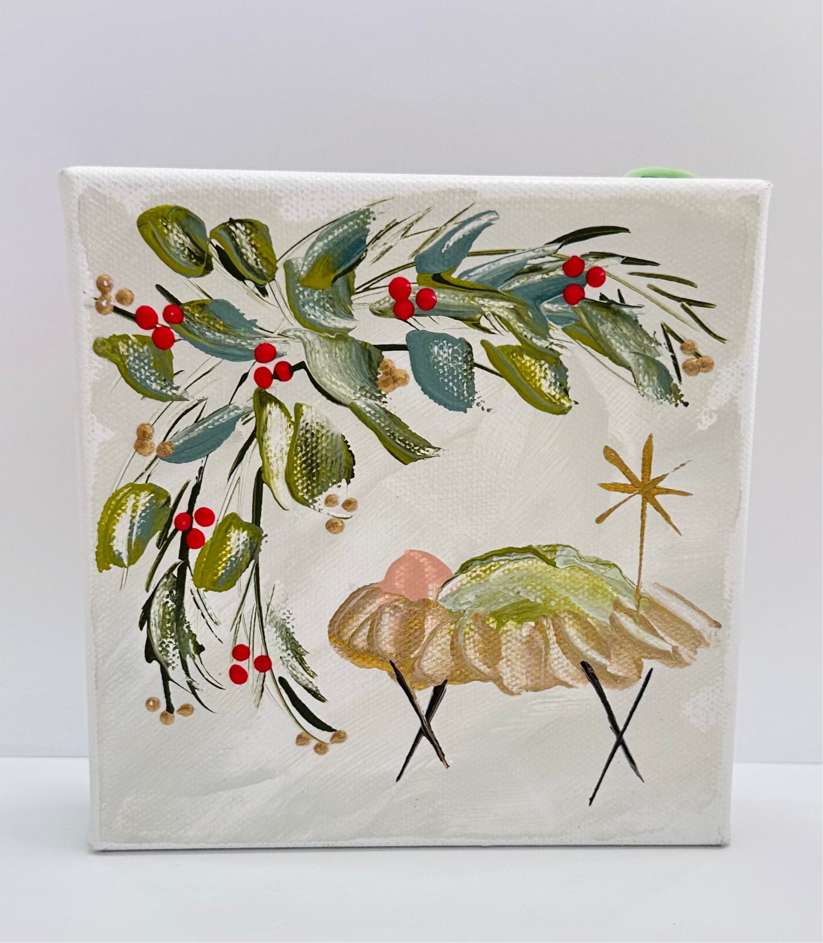 Celebrate the miracle of Christmas with this heartfelt painting of baby Jesus under the guiding star, as foretold in Matthew 1:23: “The virgin will conceive and give birth to a son, and they will call him Emmanuel' (which means 'God with us')”