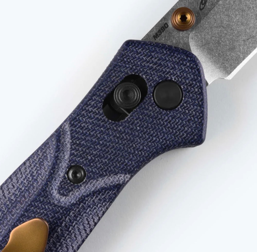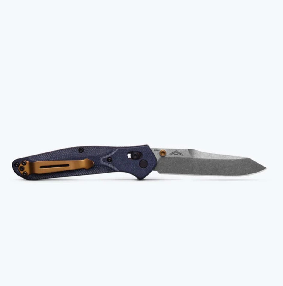 Topped off with blue denim micarta handle scales and dark copper PVD accents, the 940-04 is a hard-use, working-class hero.