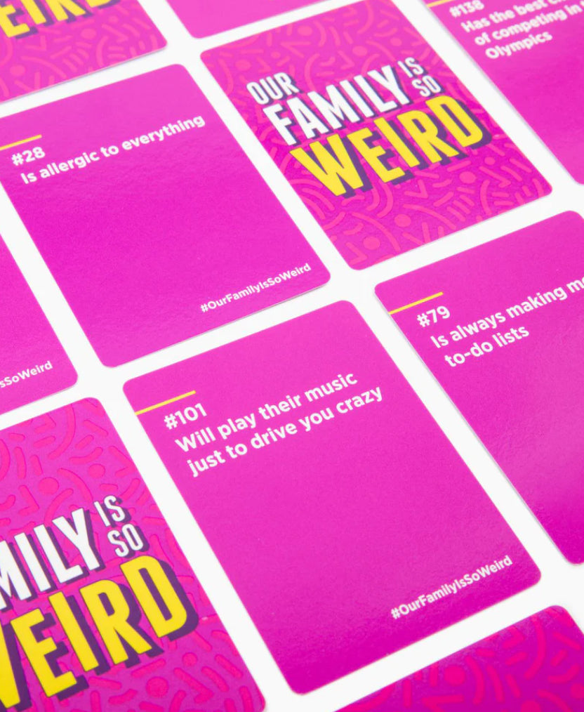 Ready for some family fun? Our Family is So Weird Game will reveal the quirkiest and most unique members of your clan. Vote on prompts like who has no filter or can sleep anywhere. Get ready to call out your family in a playful and humorous game night.