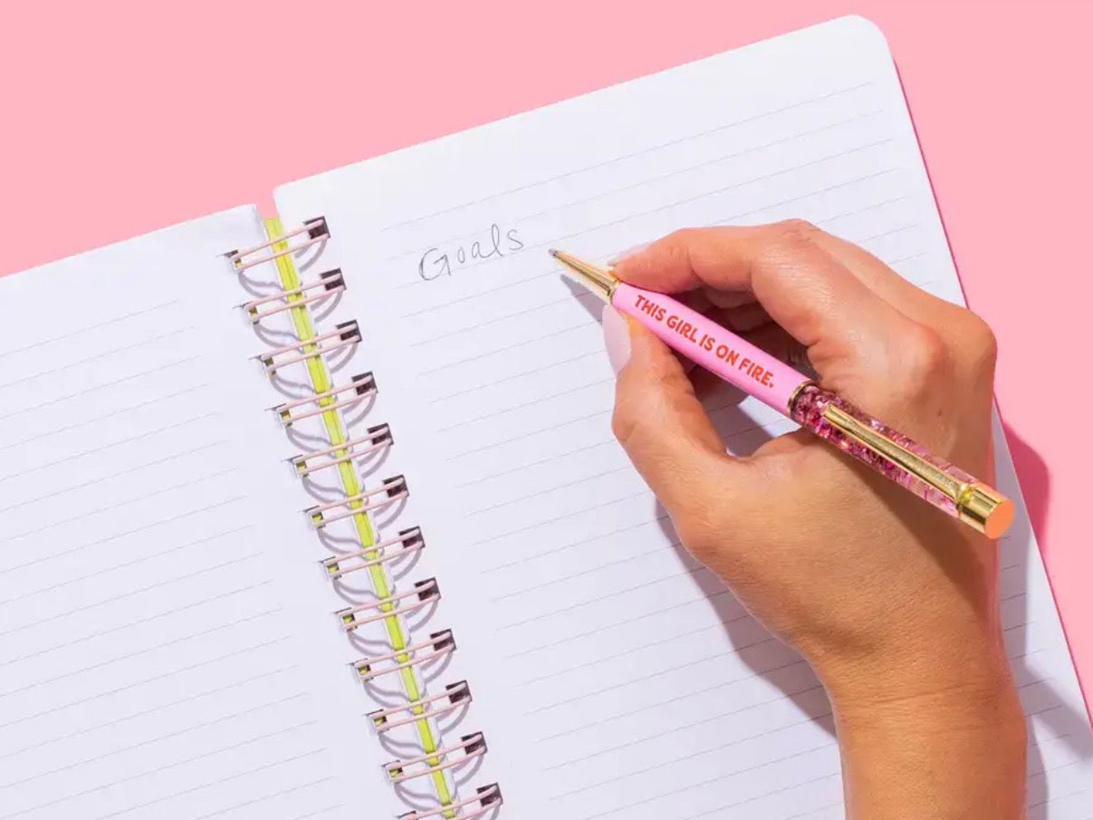 Filled with colorful confetti, adorned with gold metal accents and including the phrase "This Girl Is On Fire" or "Faith over Fear", they look as beautiful as they write.