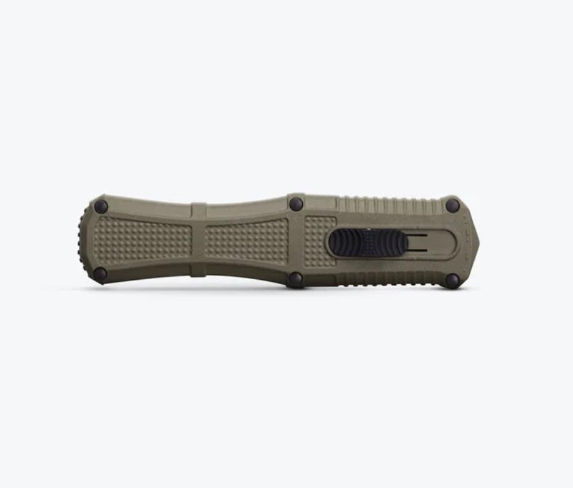 The new out-the-front configuration features a slider release button and double-edge CPM-D2 dagger housed in a lightweight Grivory® handle for ambidextrous confidence and hardcore utility in stressful situations.