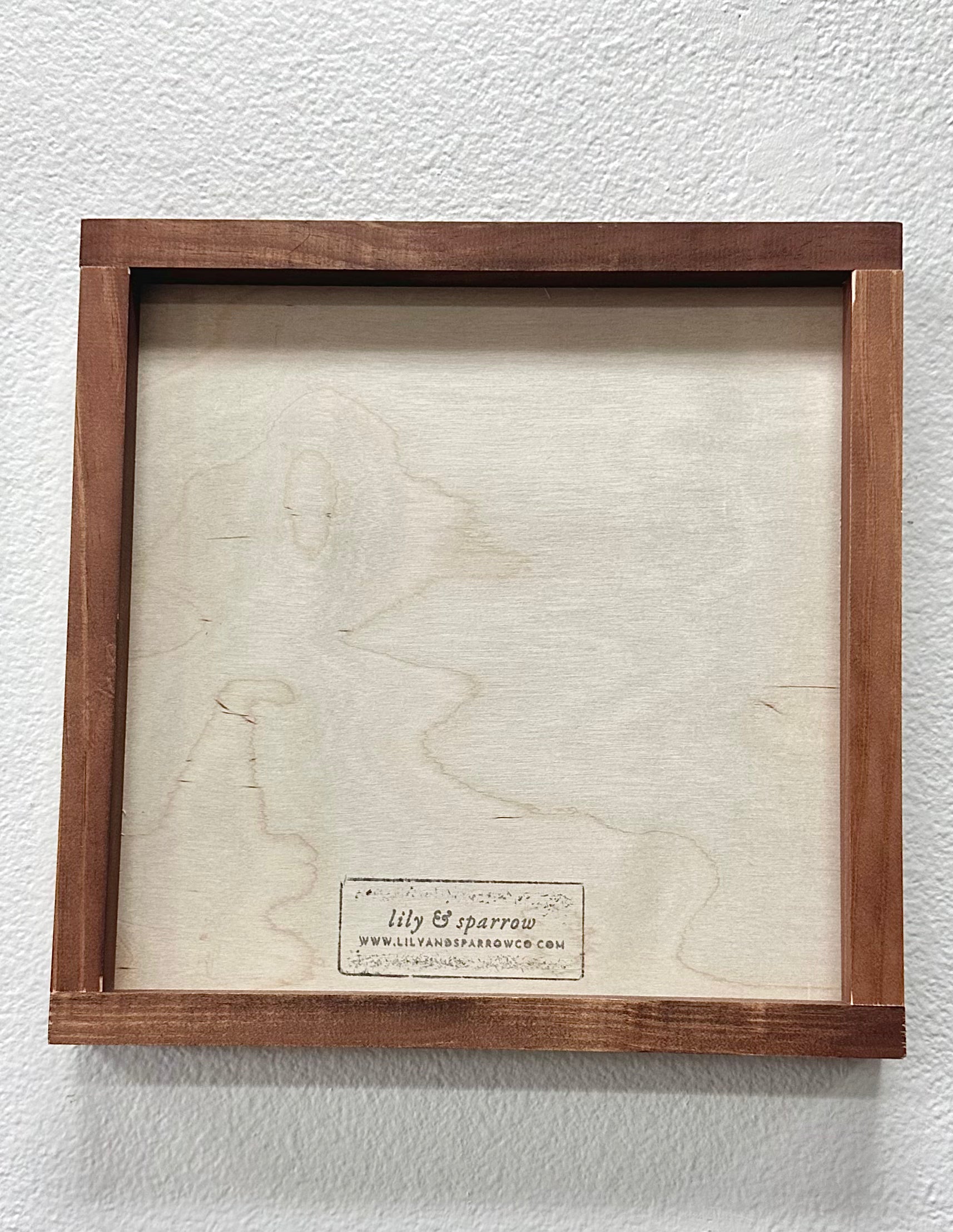 - BACK: Unfinished, natural birch; Lily & Sparrow logo