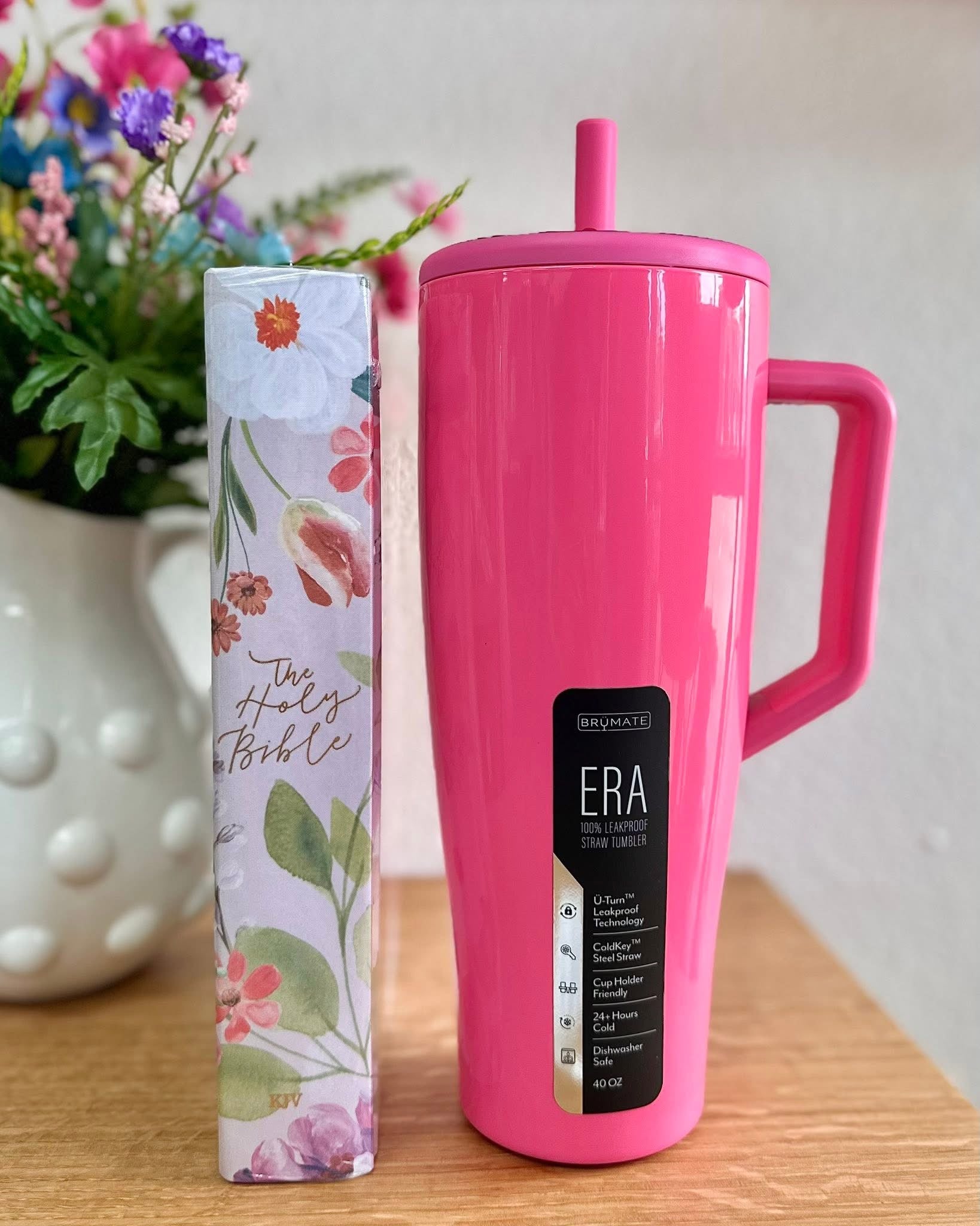 Stay hydrated with the BrüMate Era 40oz Neon Pink Tumbler. Its 100% leakproof, insulated design keeps drinks cold for hours. Made of stainless steel, it's cup holder friendly and includes a handle and flexible straw for easy sipping.