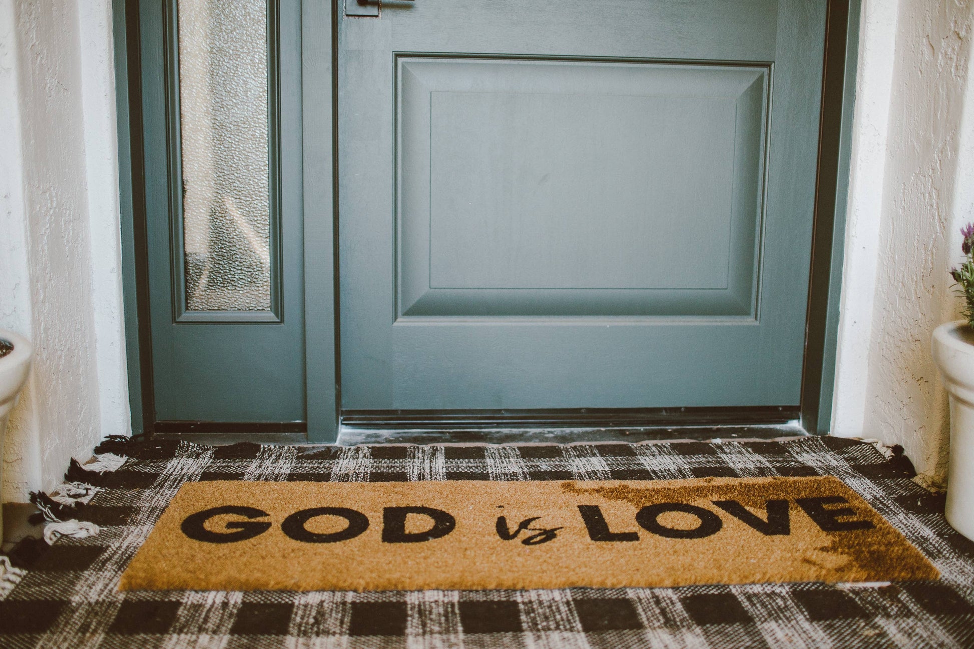 It offers a warm welcome to your home, inviting guests to pause and look upward. This doormat serves as a reminder of God's perfect and unconditional love for all of us, a love that is freely given to all.